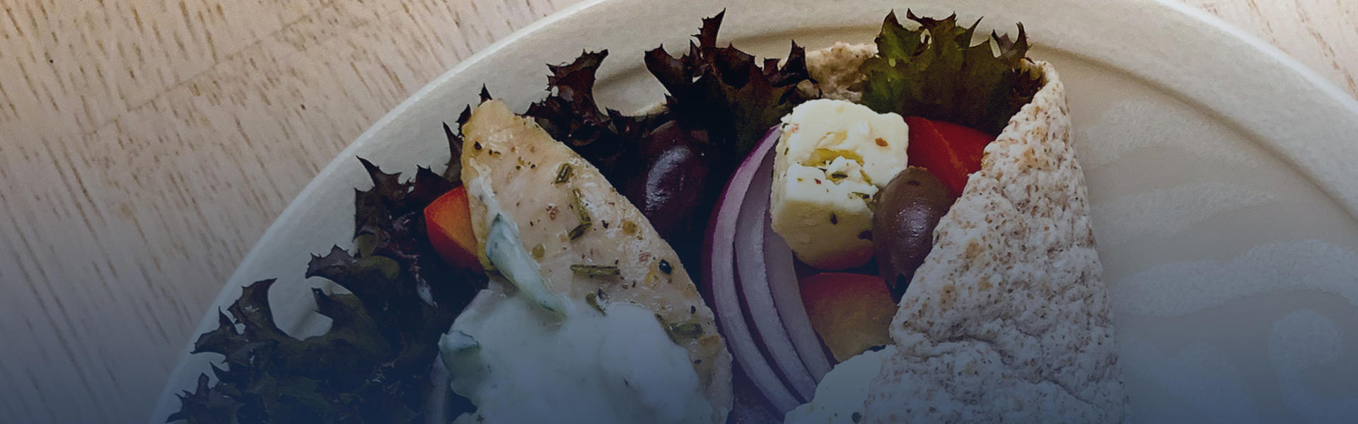 - Skär upp rödlök, paprika och tomat och skölj salladen tillwrapsen. Fyll sedanwrapsen med sallad, grönsakerna, kyckling, oliver, fetaost och tzatziki. Ifall de skall tas med på picknick eller till stranden kan du med fördel vira in dem i ett bakplåtsark med ett snöre runt om.